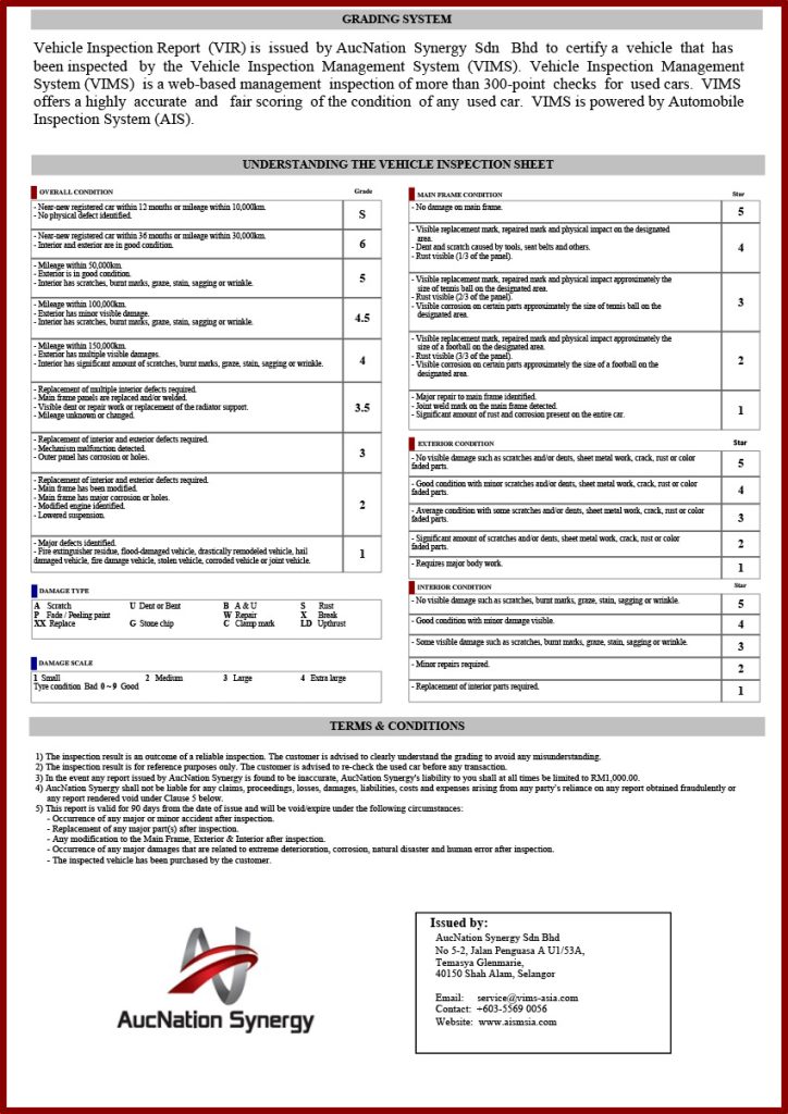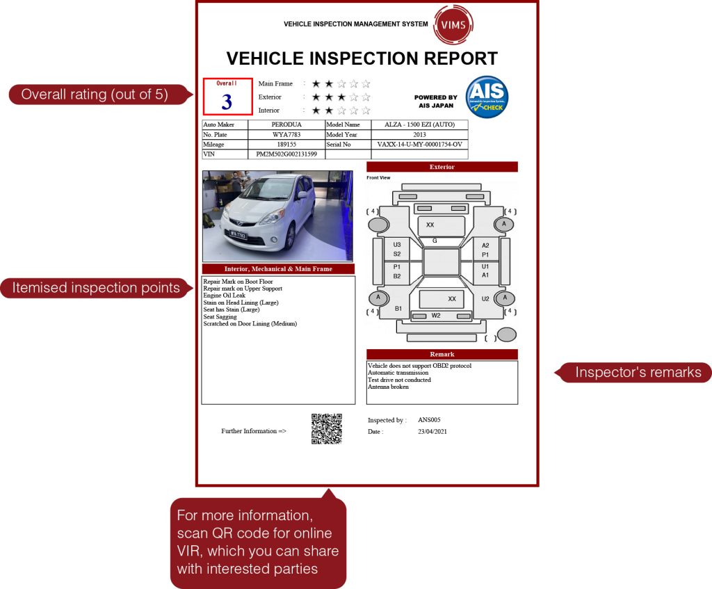 The VIMS Vehicle Inspection Report is powered by Japan’s Automobile Inspection System and is recognised internationally.